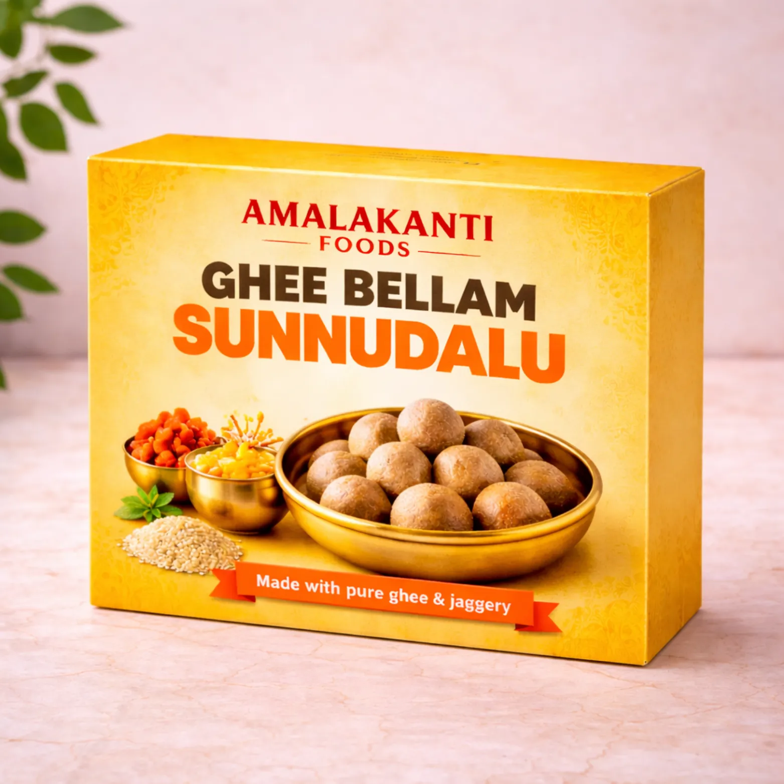 Traditional laddu made with roasted urad dal, jaggery, and pure ghee. Rich in taste and perfect for energy, offering authentic Andhra sweet flavor.