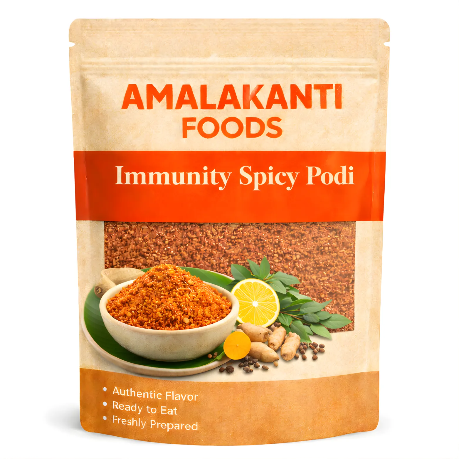 Special podi made with healthy spices and ingredients to support immunity. Perfect for daily use with rice and ghee for a nutritious meal.