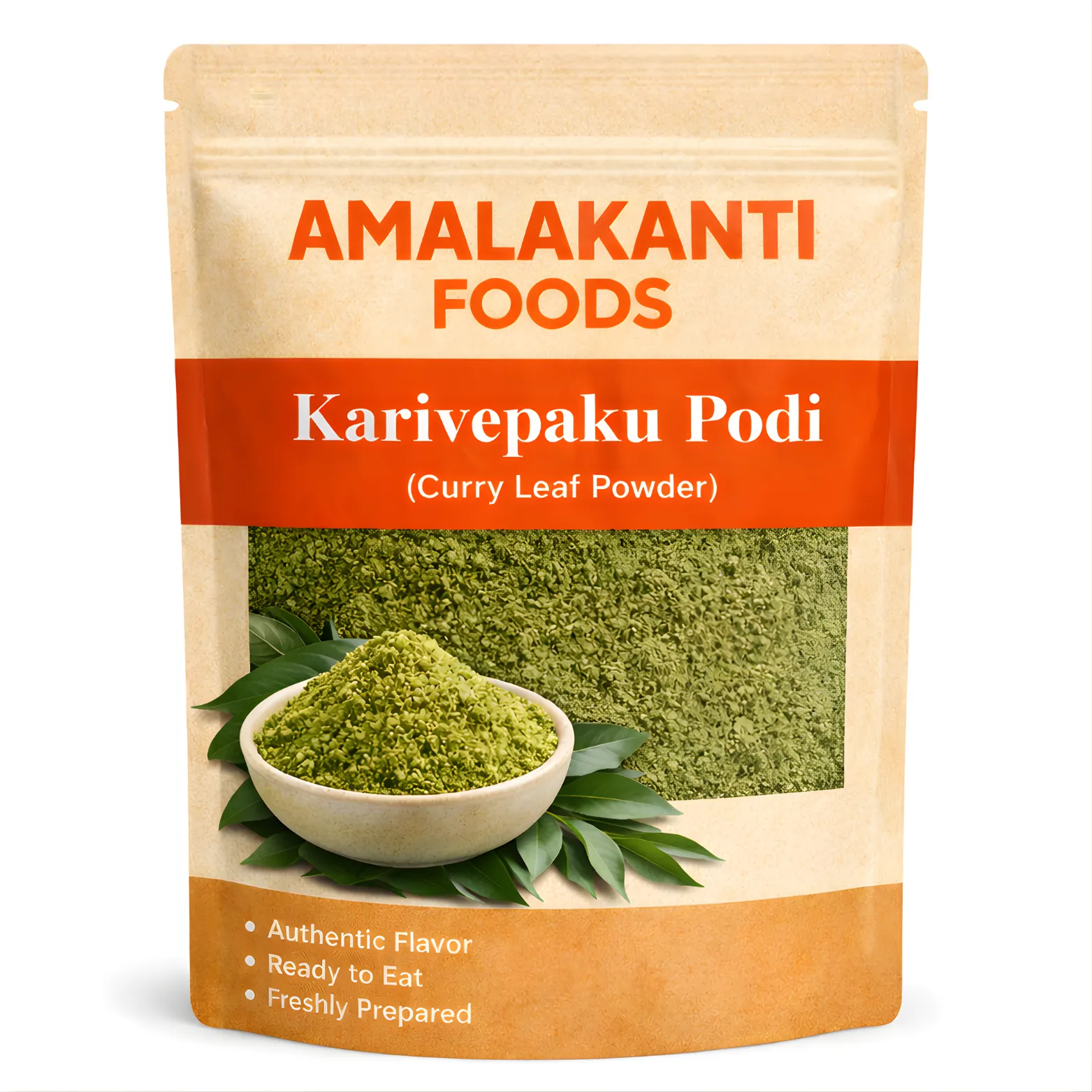 Tags: amalakanti foods, andhra podi, curry leaves podi, healthy podi, herbal powder, karivepaku podi
