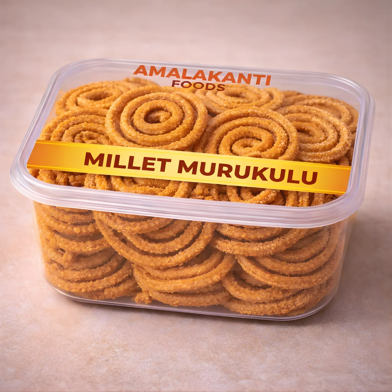 Tags: amalakanti foods, andhra snacks, crispy snacks, healthy snacks, millet murukulu, millet snacks