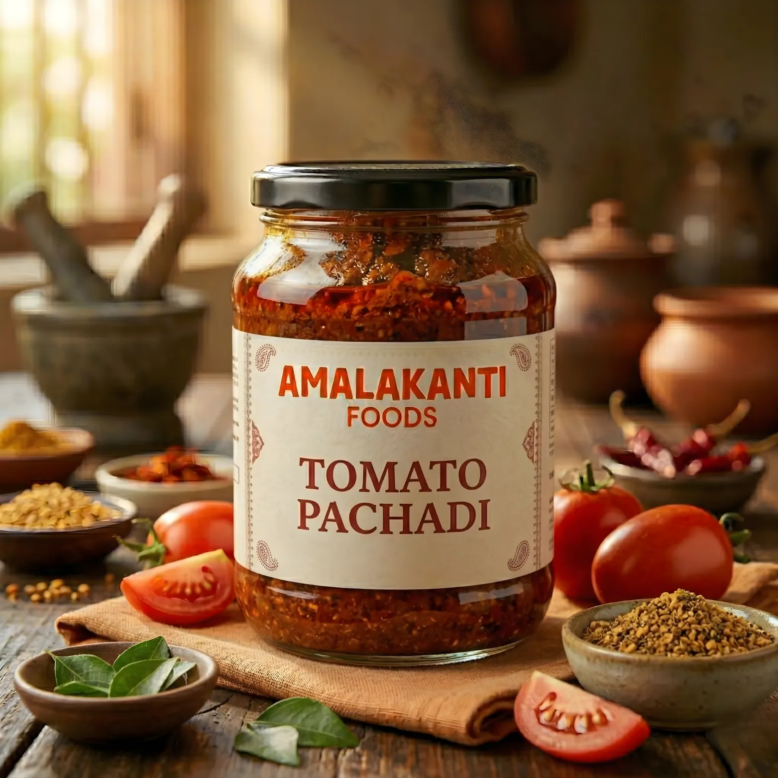 Spicy and tangy tomato pickle made from fresh tomatoes and premium spices. Perfect accompaniment for rice, dosa, and chapati meals.